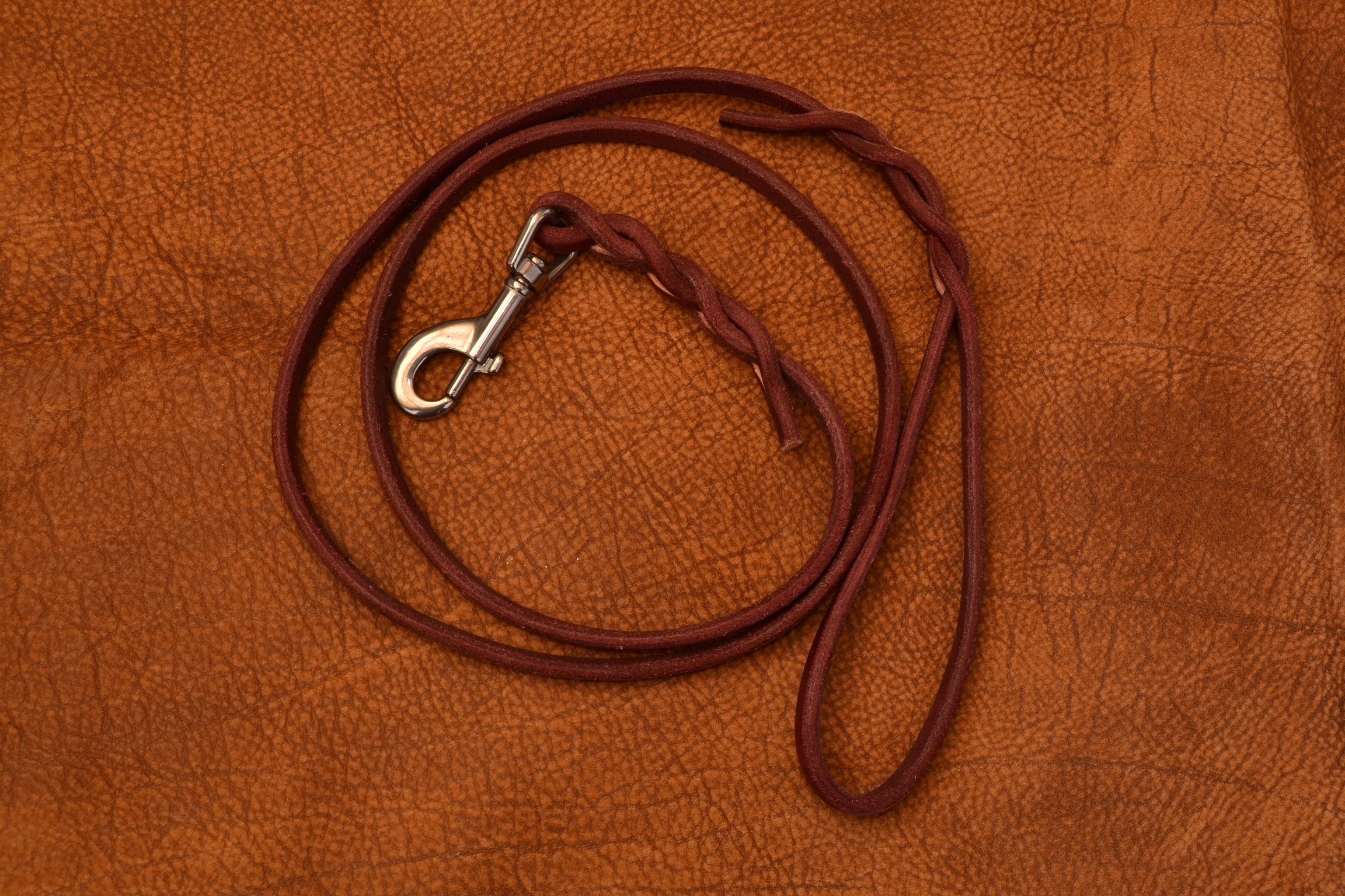 Kožené vodítko s nerezovou karabinou.